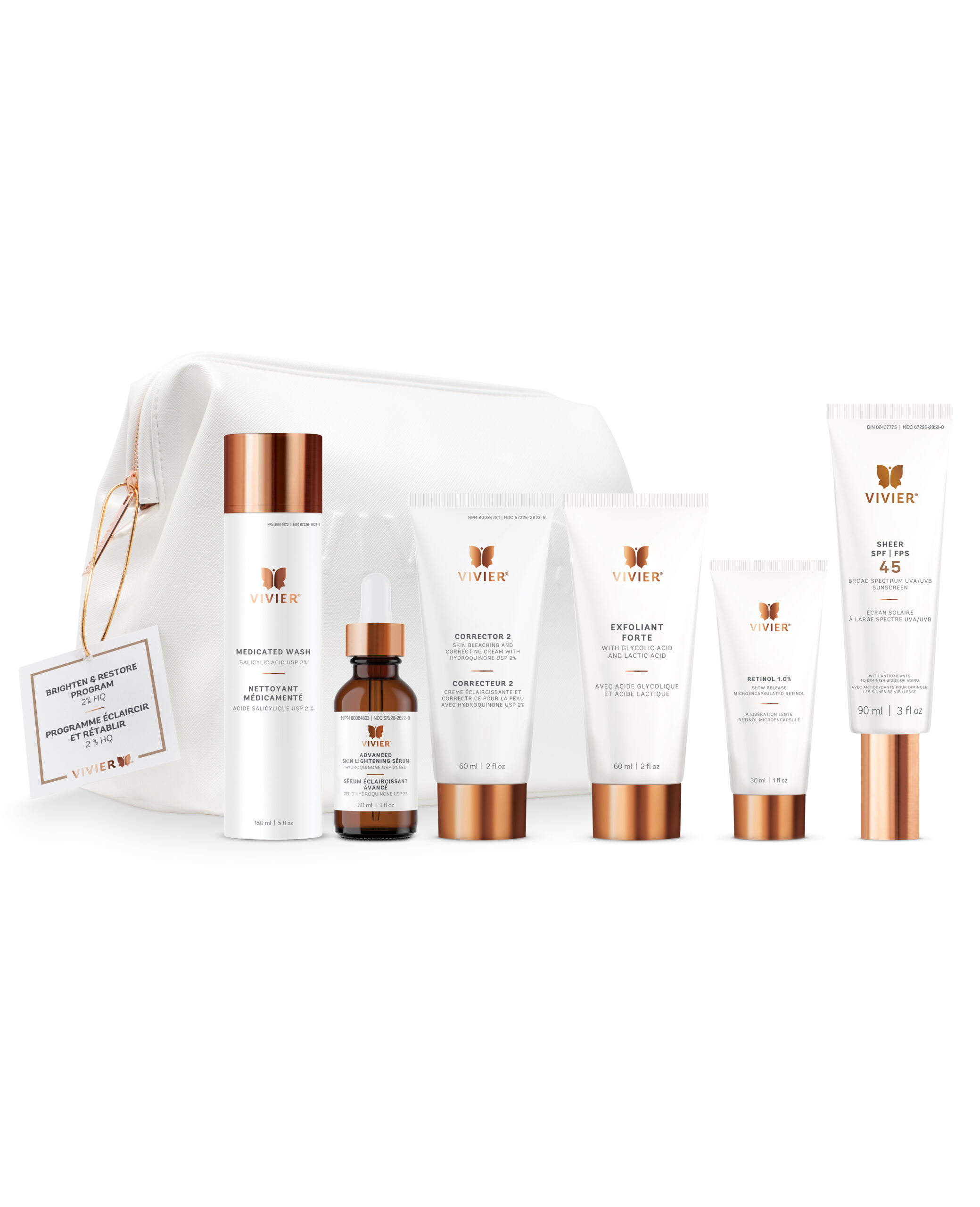 Includes the following full-size products in a Vivier branded vegan leather bag: