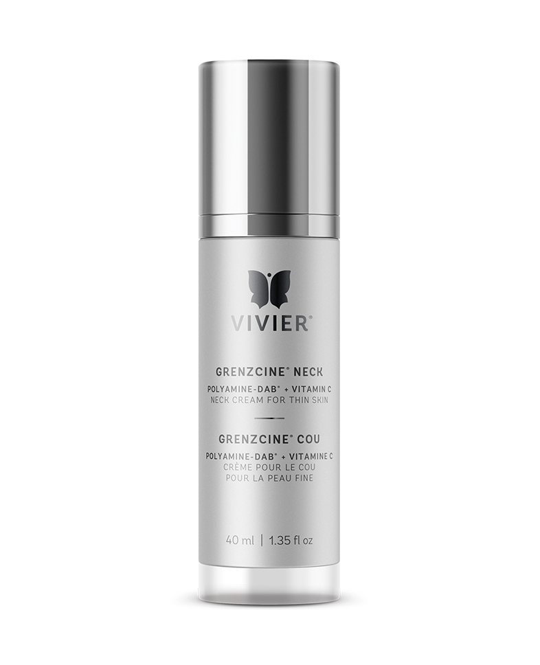 GrenzCine® Neck is a corrective cream for your neck and décolleté provides the anti-aging benefits of thickening, brightening and moisturizing your skin, while firming and lifting neck tissue. This patent pending discovery, combining Vitamin C plus Polyamine-DAB®, is truly a unique solution to help reverse the signs of aging resulting in smoother, more luminous, and healthier looking skin. This product is an ideal complement to neck firming clinic treatments.
